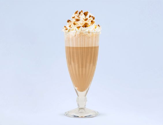 Aromatyczne espresso z aksamitnym mlekiem, podane z bitą śmietaną, kremem Biscoff i kruszonymi ciastkami Biscoff. Połączenie kawy i korzennej słodyczy w deserowej formie.